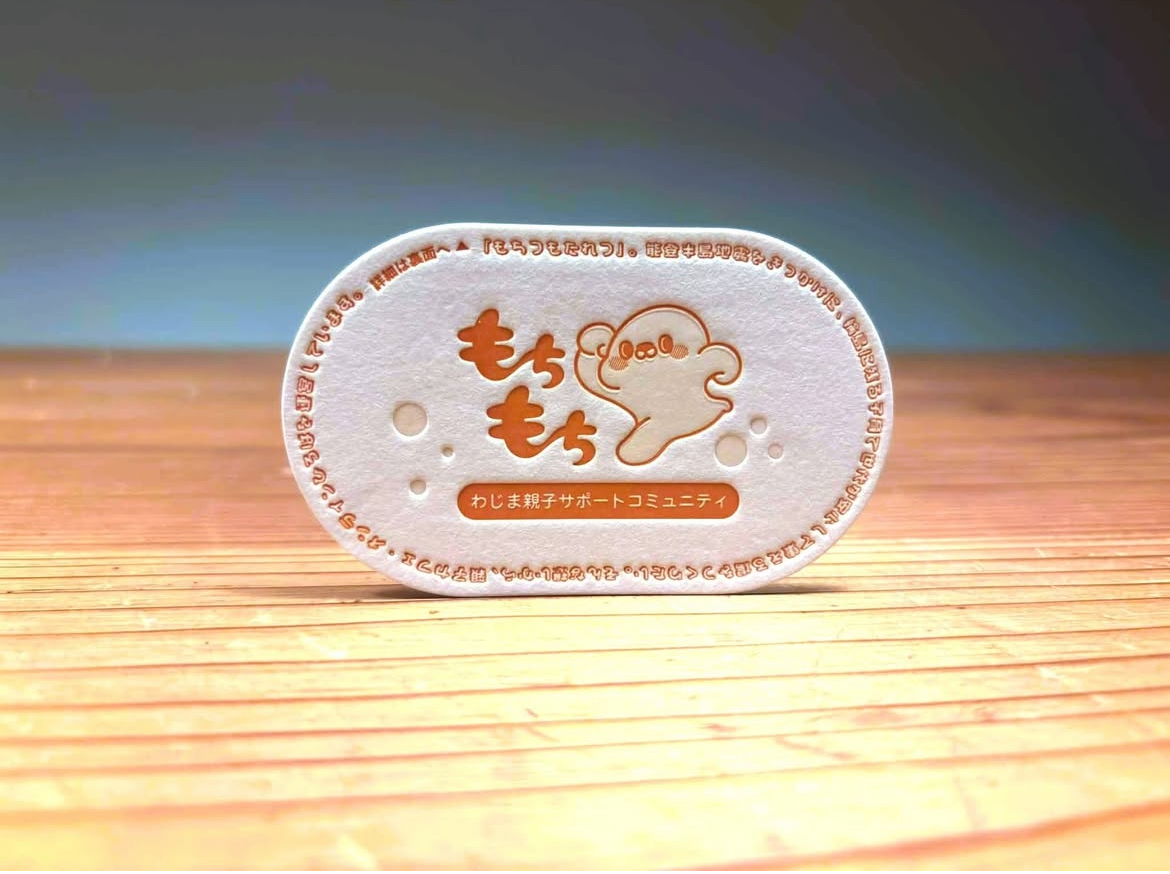 可愛いキャラクター「もちもち」に合わせて トムソンで加工しました