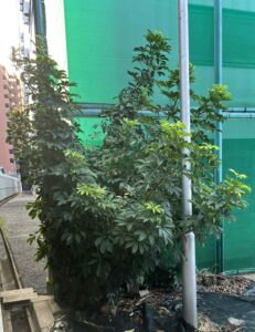 生命力っていうか 会社が移転して14年目 移転のお祝いとしてパキラの観葉植物を頂いた 陶器の鉢でいただき割ってしまって 会社の横の空地に少しの間放置のつもりが そのままにしてしまい現在に至り 二階にも届くほどの巨木と変化してしまった 生命力って新たにすごいなって思う